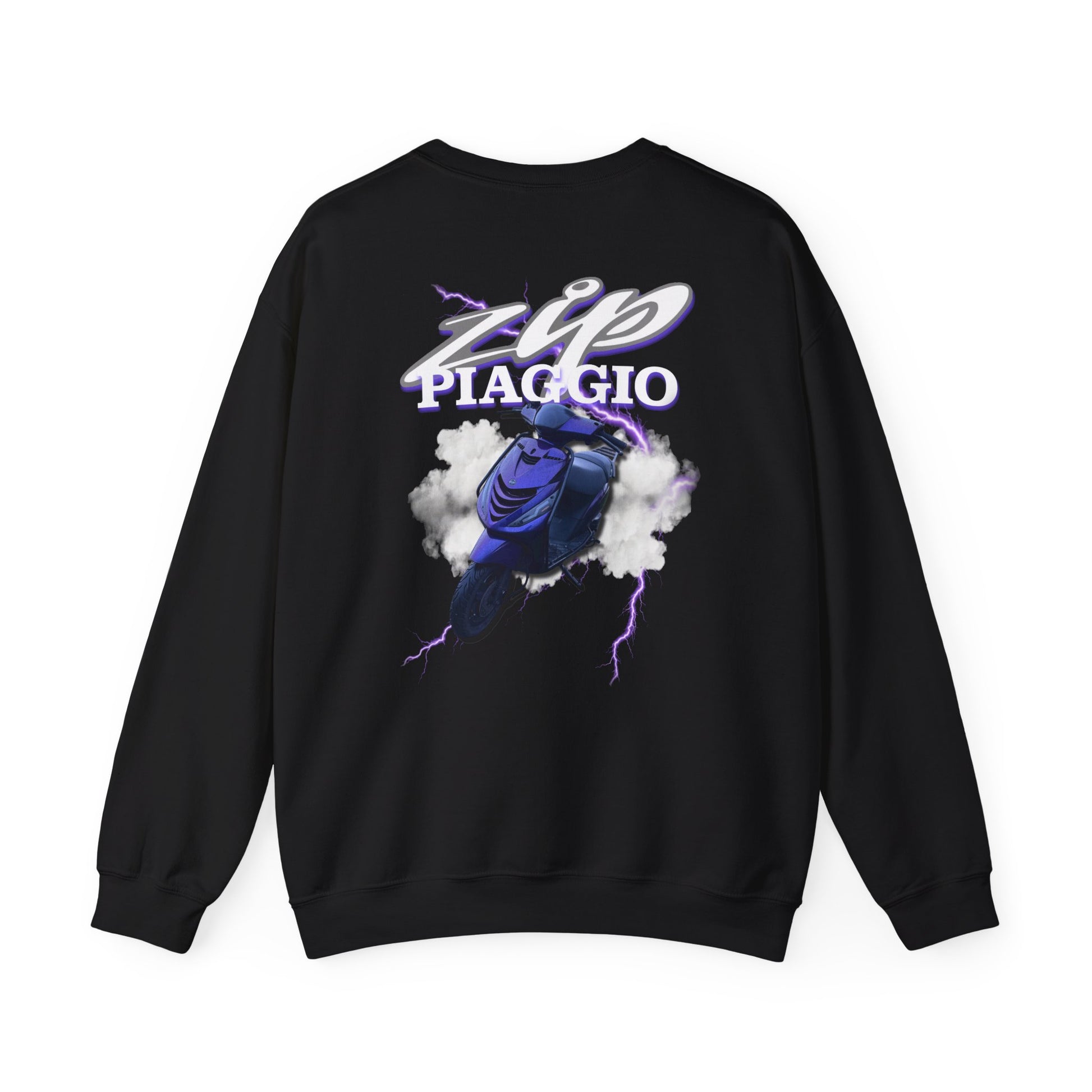 Deze midweight crewneck sweatshirt ademt de rauwe energie van de straat. De zwarte 50/50 katoen-polyester blend vormt een stevige, comfortabele basis voor het opvallende backdesign: 'PurplezipNH10' Design motorscooter en krachtige typography. Dit is geen kledingstuk dat stil blijft — dit is een statement.